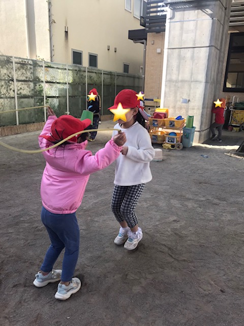 友達同士「一緒に遊ぼう!」「何して遊ぶ?」と、たくさん声を掛け合って一緒に遊んでいます。 園庭では縄跳びや鬼ごっこ、サッカーなど、