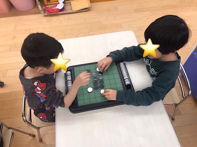 室内でもオセロやトランプ遊びなど、ルールのある遊びも人気です。