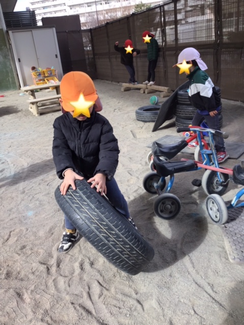 重いタイヤもどうやって運ぼうか考えながら動かしていました。