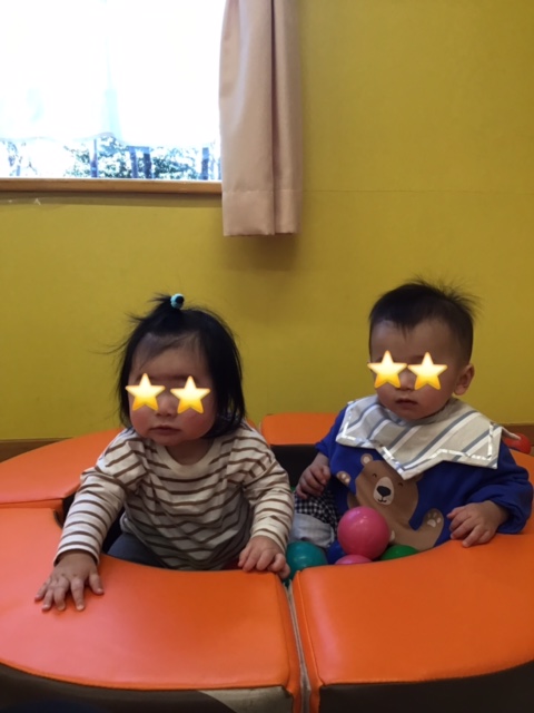 ボールプールに仲良く入って遊んでいました。