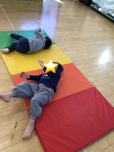 サーキット遊びをしました。 マットをコロコロ転がったり、、