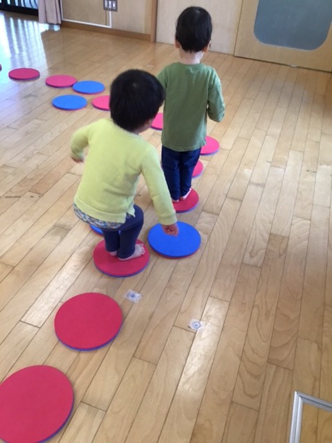 赤い丸は両足跳び、青い丸はパージャンプ! 難しいけど挑戦していました。