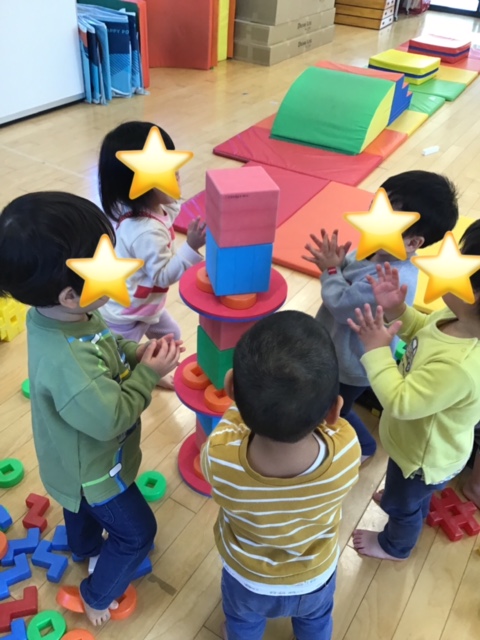 ブロックでは大きなケーキを作ってお誕生日会をしたり、、