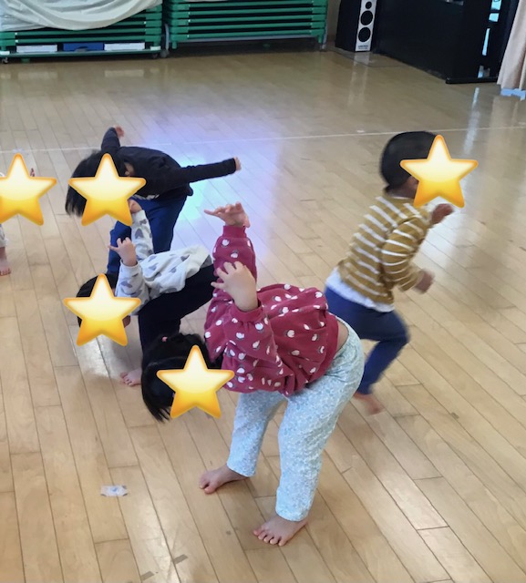 くるりんしっぽのりすさんになって、おひさまやしかなど、色々なポーズをして楽しみました。