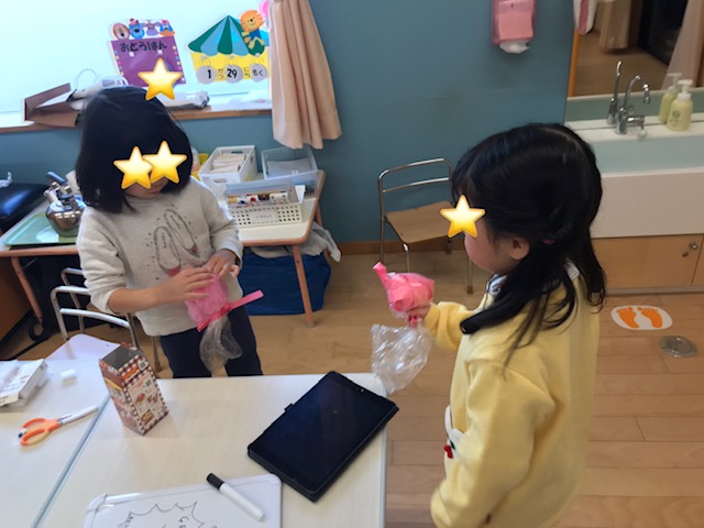 同じ工作を作る際には「〇〇ちゃんじょうずだね」と伝えあっていました。