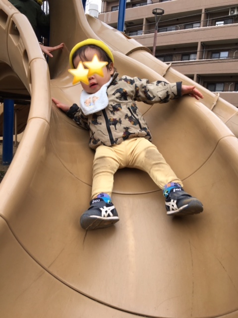 滑り台にも挑戦しましたよ。