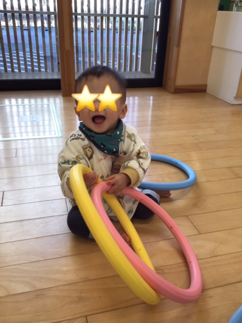 フープを手に取る事ができてニコニコ笑顔を見せてくれました。