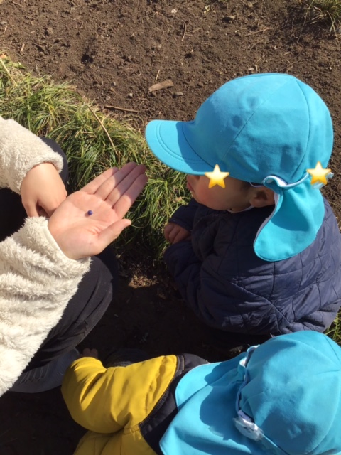 青い実を見つけました。「これはなあに?」よく見つけるのは赤い実なので、不思議そうに聞いていました。