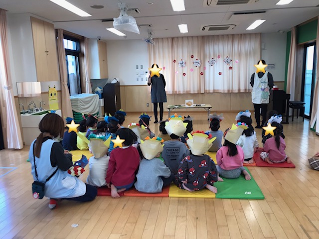 節分の集いをしました。 節分に飾る【ひいらぎいわし】の紹介や、 恵方巻きのお話、鬼の紙芝居など真剣に聞く姿が見られました。