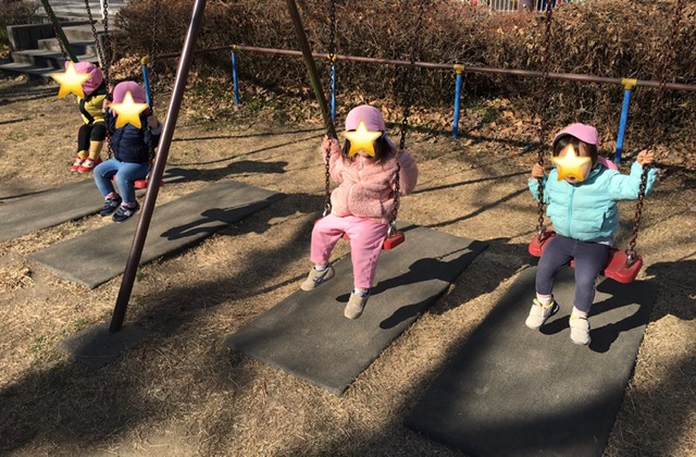 その後は、北第二公園へお散歩に行きました。 みんなでブランコに乗ったり、