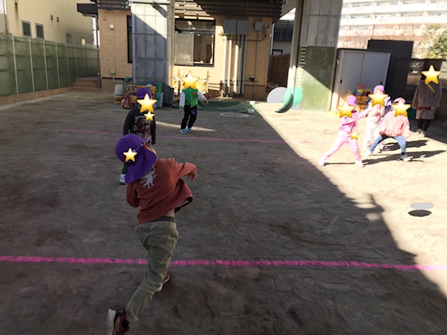 寒さも感じないほど元気なにじ組の子どもたち。