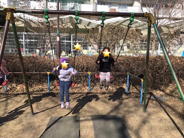 ブランコでは、タイミングを合わせて漕ぎ、仲良く息ぴったりでした。