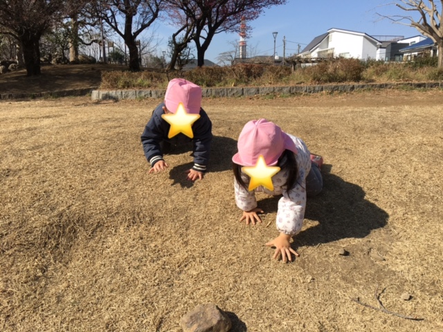 芝生では寝転がって日向ぼっこをしたり、 腹ばいで上り下りを楽しんでいます。
