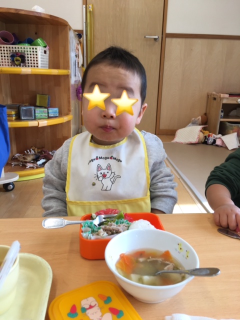 保育園に帰ってきてからは、お弁当給食を食べました。
