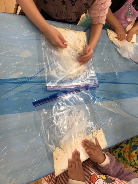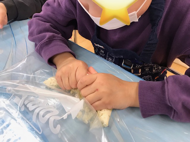 たくさん捏ねていくと一つに纏まり「気持ちいいよ!」と教えてくれました。