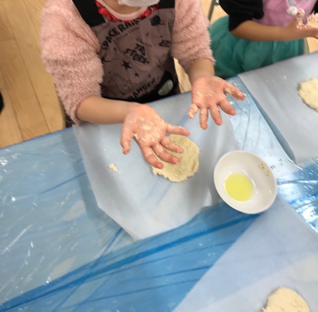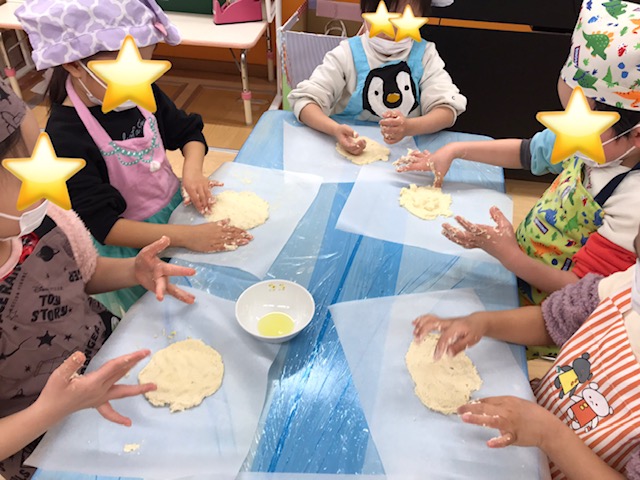 生地から作って色んな感触を楽しむことができ、最後は美味しいピザをみんなでいただきました。
