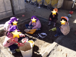 みんなから「雪遊びしたよー」「雪だるま作った」など、雪遊びしたお話を沢山してくれました。 園でも雪遊びをしました。