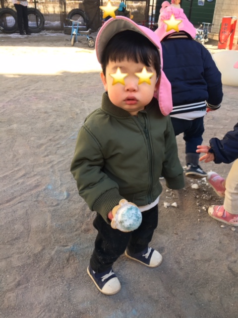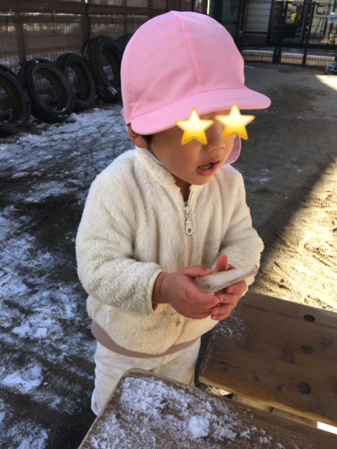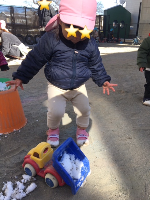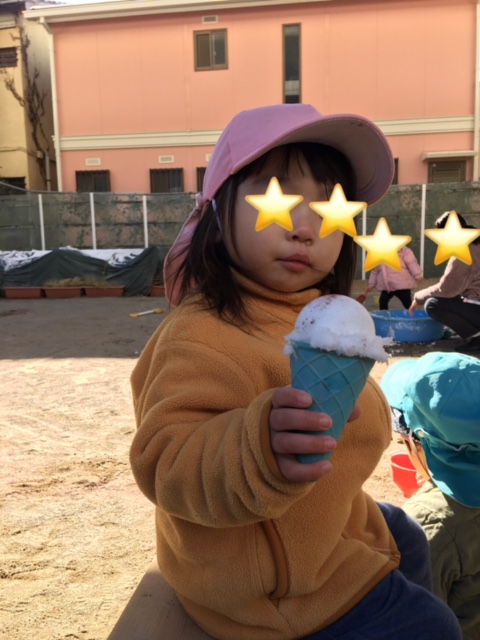 昨日の雪が残っていたので園庭で雪遊びをしました。 コップに雪をたくさん入れましたよ
