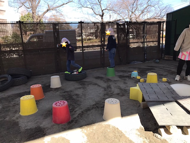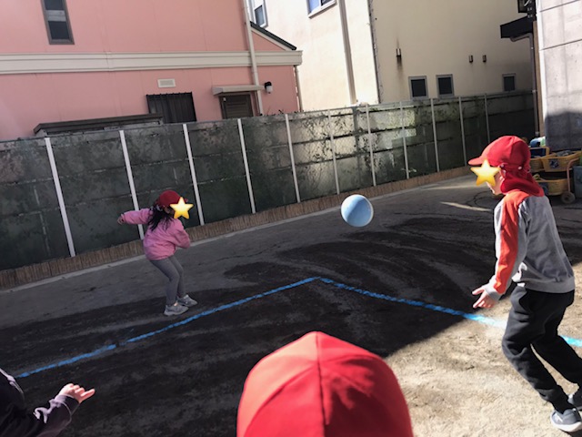 中当てゲームも長時間楽しみました。 バウンドしたボールをキャッチすることも覚えてボールをよく見ています。