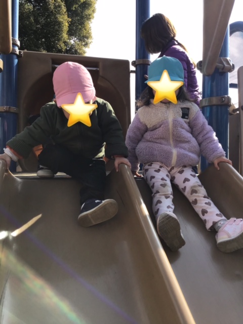 広場で追いかけっこをしたり、寝転んで休憩中かな?