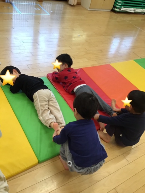 ホールでは大根抜きゲームやピンポンゲームをしました。