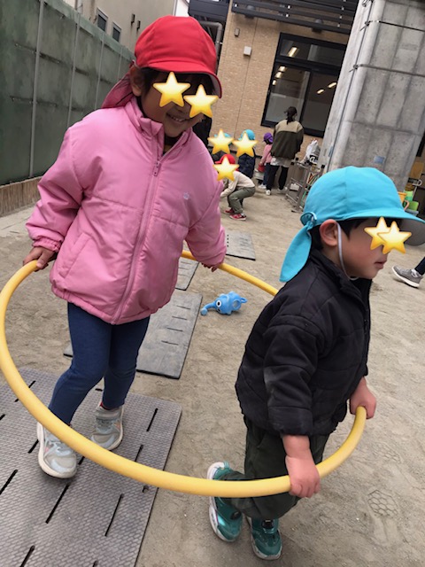 園庭では、ぱんだ組さんのお世話をしたり、自分で遊びを作ったりと寒さを忘れ遊び込んでいました。