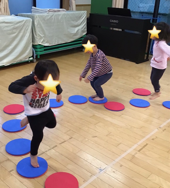 ケンケンパッ!まだ片足ケンケンは難しいけど、挑戦して頑張ってました。