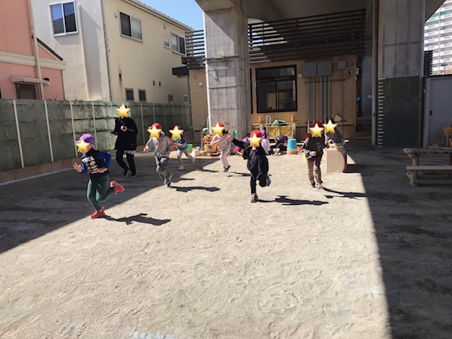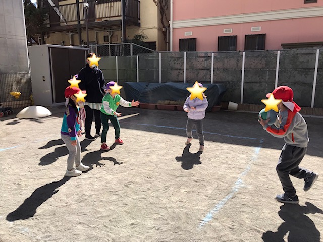 ぽっくりを使った鬼ごっこを友だちと考えてみたり、