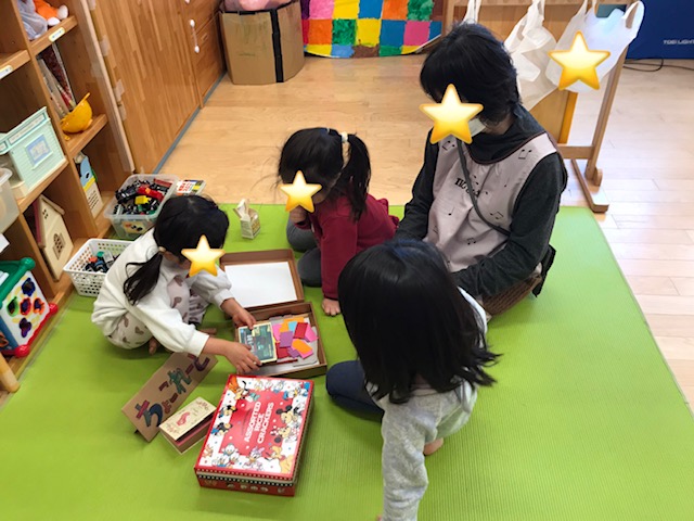 お部屋で廃材遊びを楽しみました。