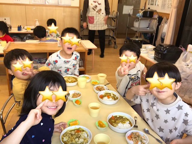 カレーが出来上がるとそら組さんと一緒に食べました。
