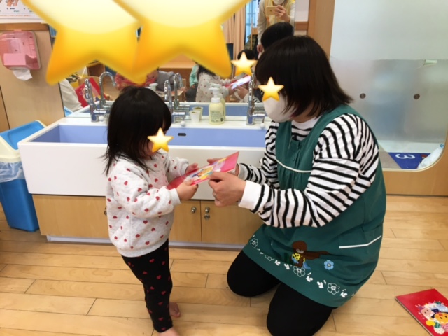 お歌が上手になったね、沢山お話しできるようになったね…みんなで最後は「おめでとう」と拍手をして会を終了しました。 うさぎ組さんで過ごすのもあと1日…みんなで沢山遊ぼうね。
