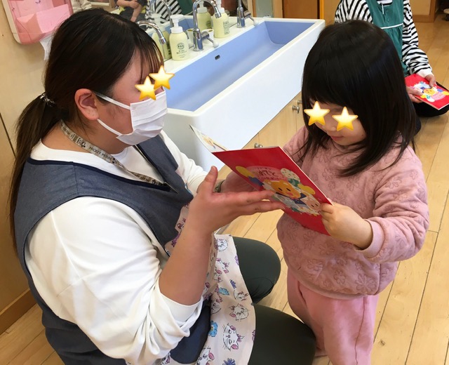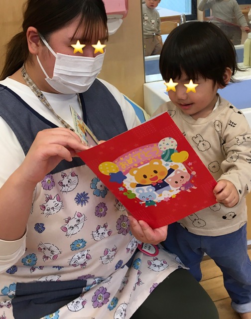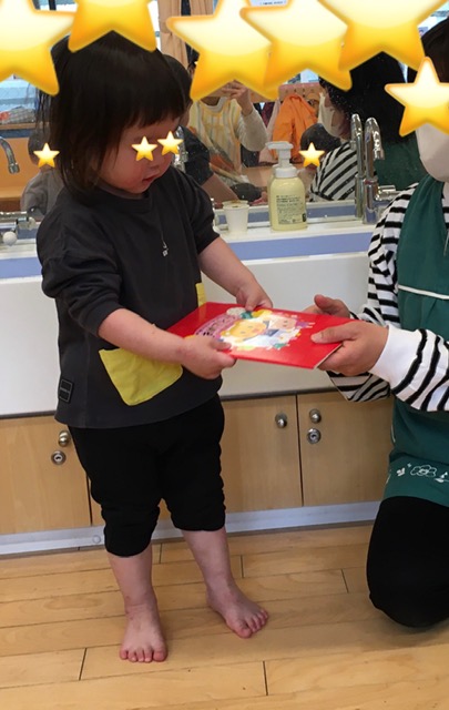 保育者から一人ひとりにカードをプレゼントしました。