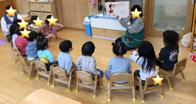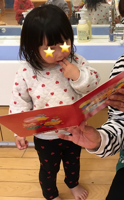 手遊びをしてからみんなに保育者がお話をしました。