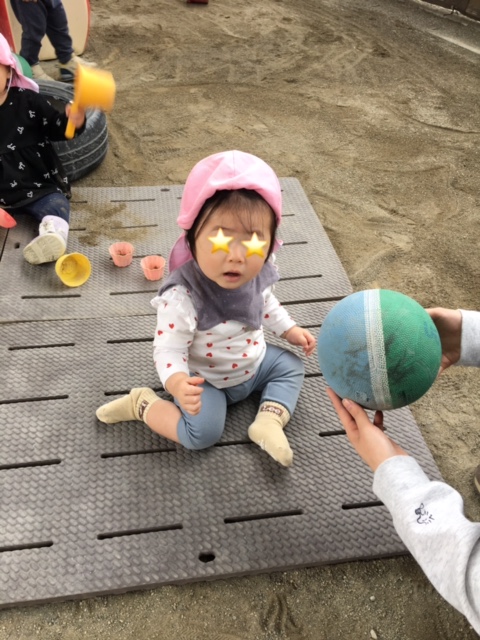 ピンク色のうさぎ組帽子を被って嬉しそうにしていた子どもたちです。