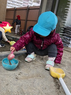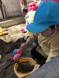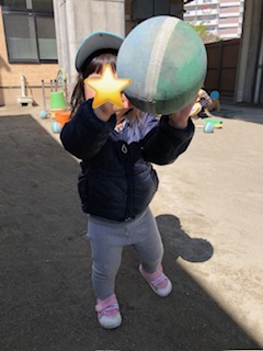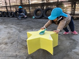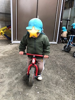 園庭では、バイクに乗って勢いよく走らせていました。みんなの速さにびっくりしました。