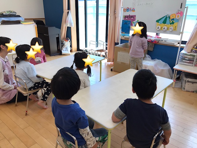 お当番さんのおしごとは 朝のご挨拶、食事の挨拶やメニューを発表する、先生のお手伝いなどみんなで考えました。 お当番になったお友達は前に立ってから挨拶をしてくれました。