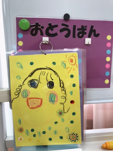 自分達で似顔絵を描き、お当番表を作りました。 「きょうは〇〇ちゃんだね」とお友達同士で教え合っていました。
