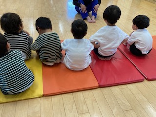 初めての体育指導ということで、朝から何だかソワソワしたり「やらない!」と言っていたほし組さんでした。いよいよ体育指導へ! 先生とのお約束「①お話を聞く時は顔を見る②最後まで諦めない③押しちゃダメ」の約束を守ろうと頑張っておりました。キノコの体操も元気いっぱい踊りました。