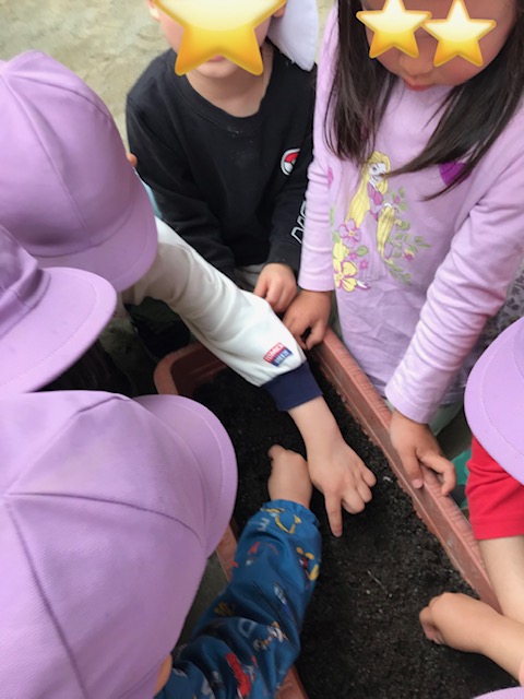 小さな穴に種を植えて、指で優しく土をかけてあげていました。