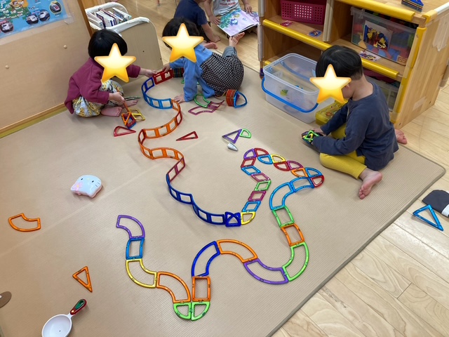 マグネットの玩具でも「こうしてみようよ」「いいね」とやり取りが聞こえてきました。