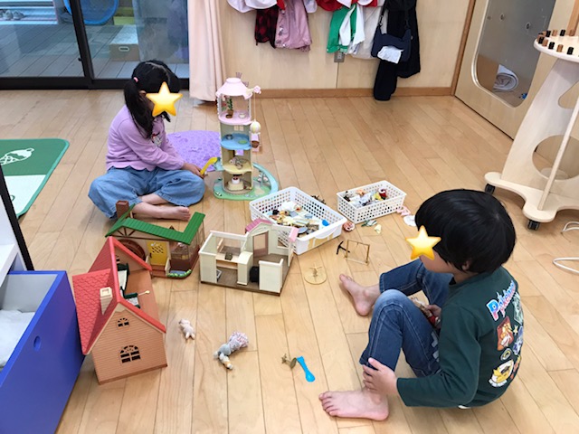 また、シルバニアでも遊んでいました。 「ぱんやさんやろう」「わかった!よういしてるね」と何をするか相談しながら遊んでいました。
