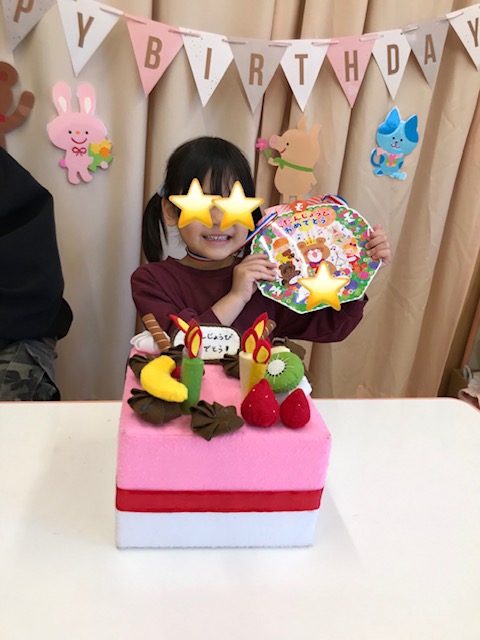 アイスのコーンのローソクも立ててケーキが出来ると、みんなでハッピーバースデーを歌ってお祝いしていました。