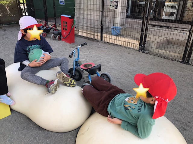 園庭は、暑かったので休憩しながらサッカーやおままごとを楽しんでいました。