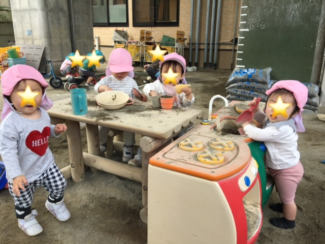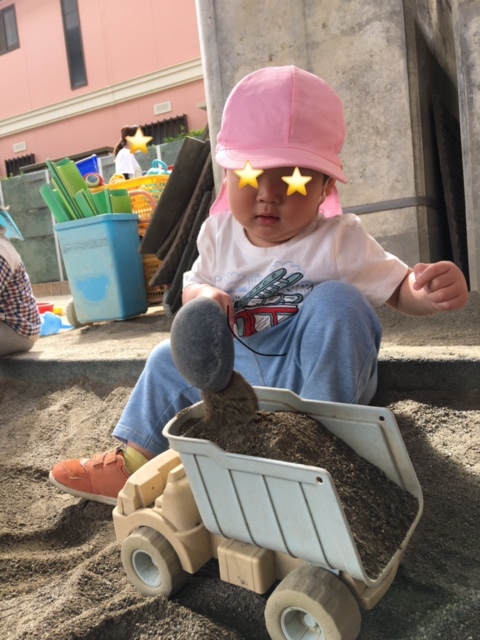 ほし組のお兄さんがキラキラの石を見つけている様子をじっと見ていました。