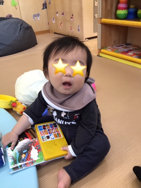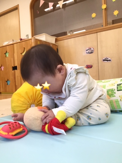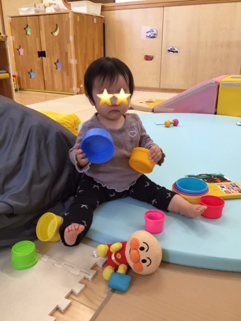 新しい環境にも少しづつ慣れ、お部屋で気になるおもちゃを手に取って遊ぶ姿が増えてきました。