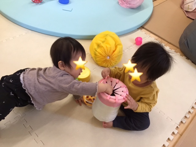 「なにしてるのー?」とお友達の遊んでいる玩具が気になるようで一緒に遊ぶ姿も見られました。