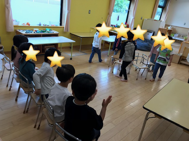 歌に合わせて歩いたり、「ストップ!」の声でサッと椅子に座るのが上手なにじ組さんです。