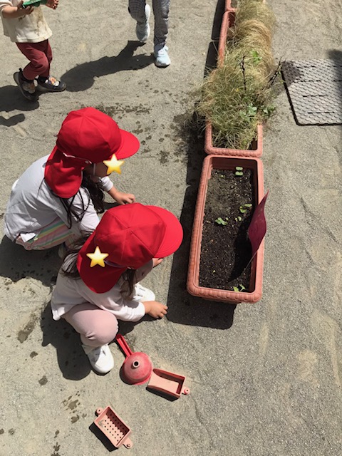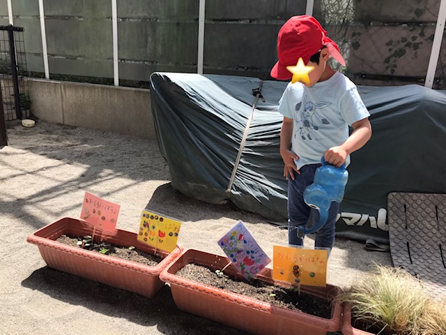 お当番さんは水やりをします。 当番が回ってくることを楽しみにしている様子で、 「きょうみずあげるよね?」と保育者に聞いてくれました。 引き続き生長を感じながら楽しく観察していきたいと思います。