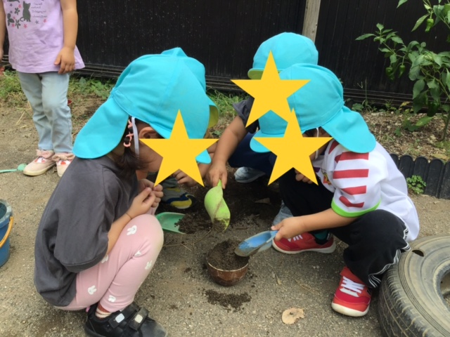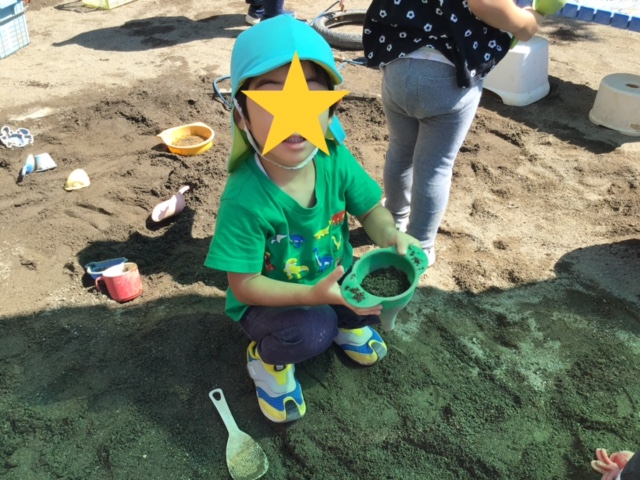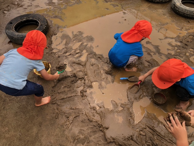 ※本日泥遊びで衣服が汚れているお友だちがいます。ご家庭でのお洗濯、お手数おかけしますがよろしくお願いいたします。