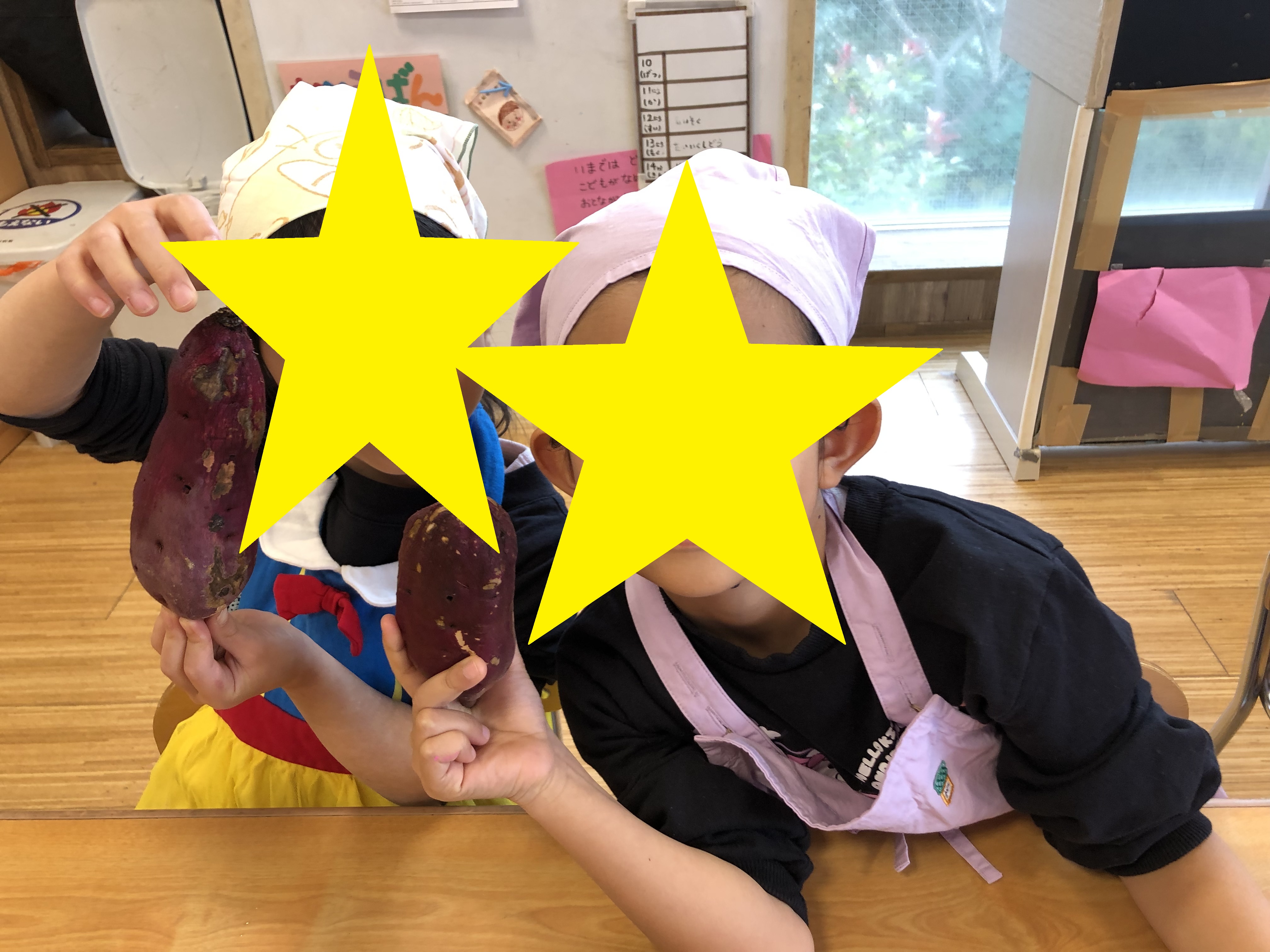 5歳児さんが10月に畑で収穫してきたさつま芋を使用します。